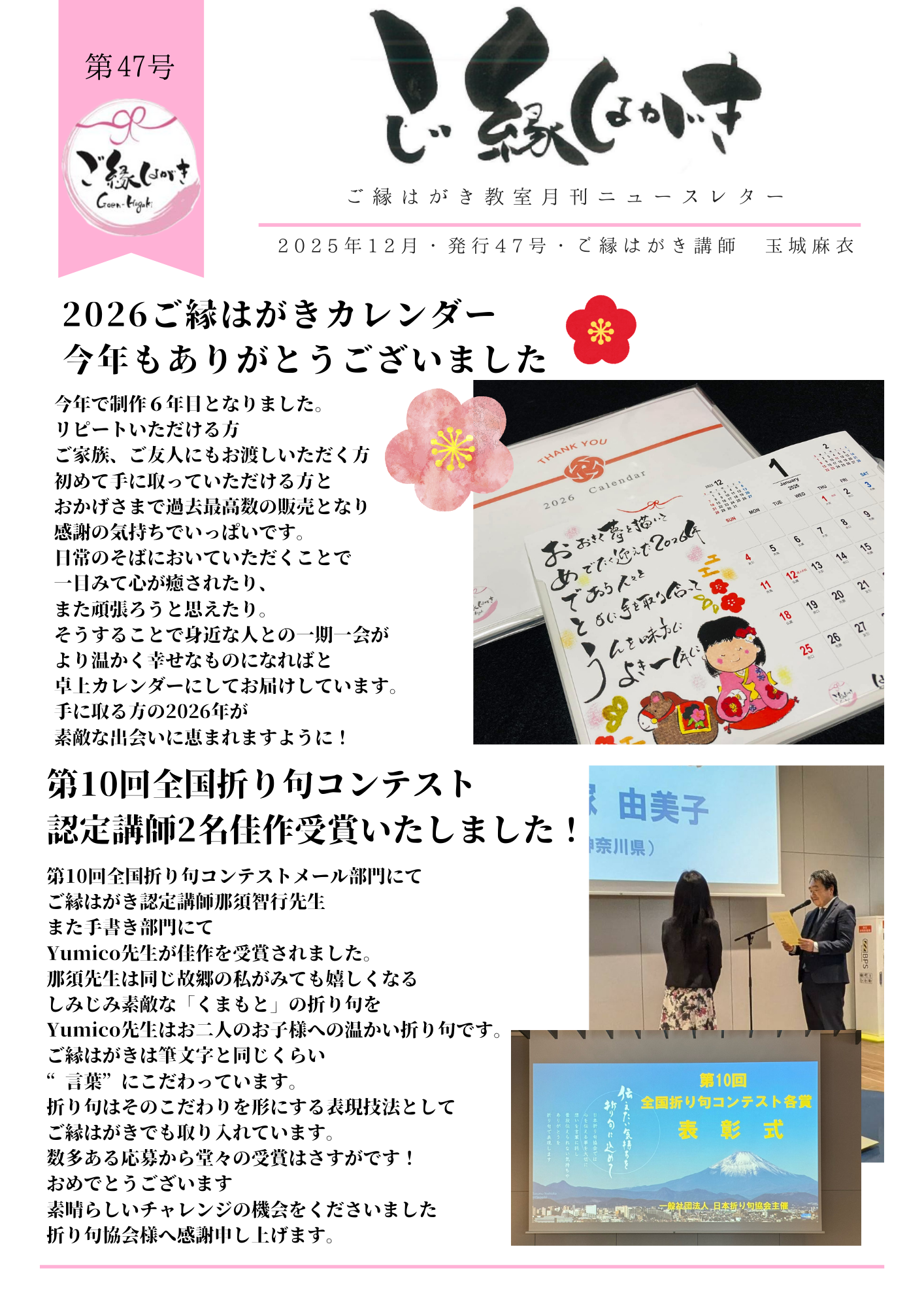 【第47回】2026ご縁はがきカレンダー完売!今年もありがとうございました!